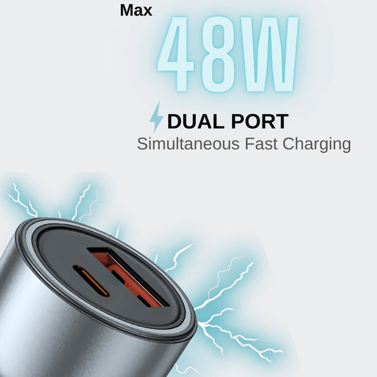 Bull fast Car charger double port (type C 20W PD +33W USB) Quick charging travel adapter compatible with all smart phones