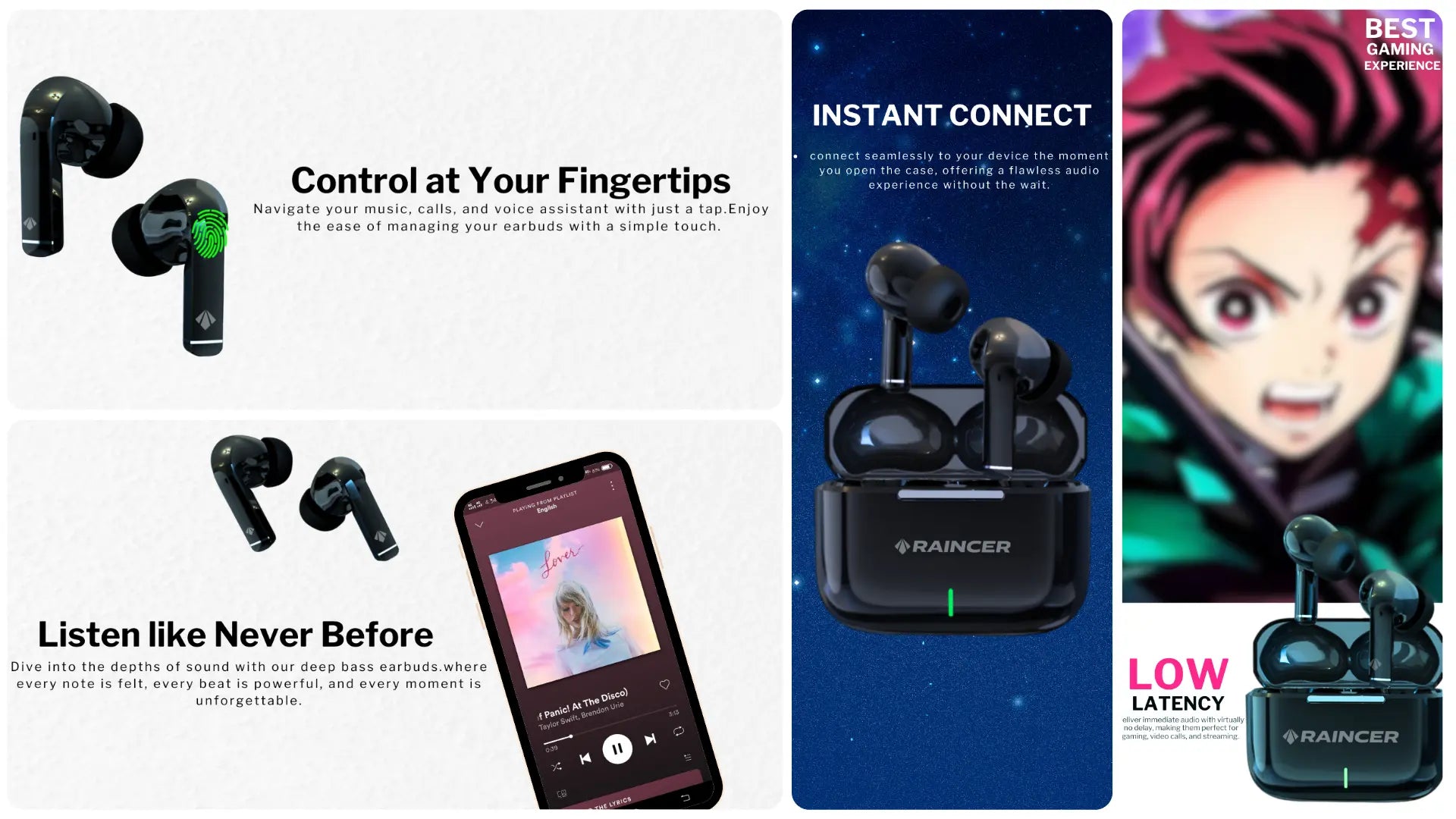 Raincer® Wireless Earbud(Earphone) TWS : BAASPOD